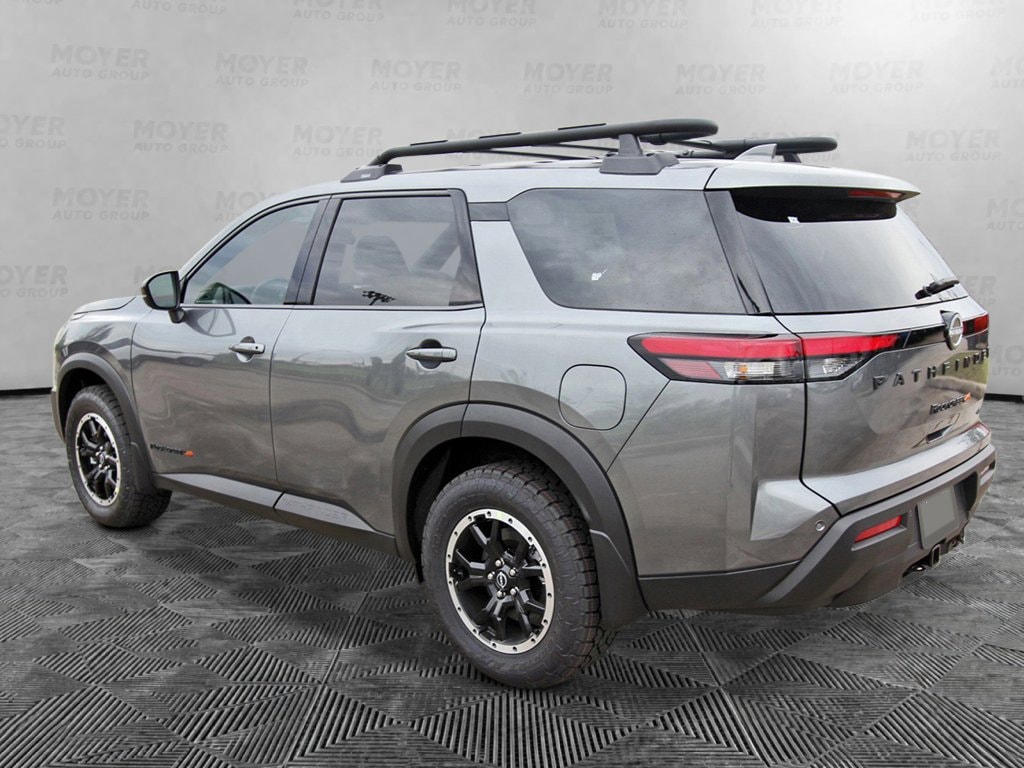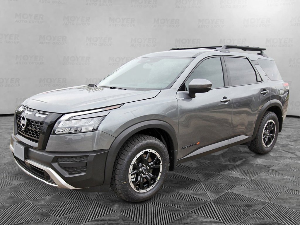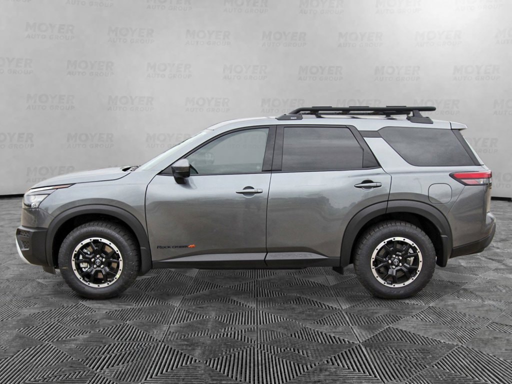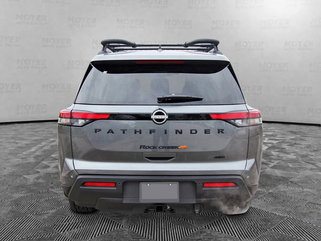 3rd row seats: bench, 4-Wheel Disc Brakes, 6 Speakers, ABS brakes, Air Conditioning, Alloy wheels, AM/FM radio: SiriusXM, Auto High-beam Headlights, Automatic temperature control, Black Splash Guards (set of 4), Brake assist, Delay-off headlights, Driver door bin, Driver vanity mirror, Dual front impact airbags, Dual front side impact airbags, Electronic Stability Control, Emergency communication system, Four wheel independent suspension, Front anti-roll bar, Front Bucket Seats, Front Center Armrest, Front dual zone A/C, Front fog lights, Front reading lights, Fully automatic headlights, Heated door mirrors, Heated Front Bucket Seats, Heated front seats, Illuminated entry, Knee airbag, Leather steering wheel, Leatherette-Appointed Seating Surfaces, Low tire pressure warning, NissanConnect featuring Apple CarPlay and Android Auto, Occupant sensing airbag, Outside temperature display, Overhead airbag, Overhead console, Panic alarm, Passenger door bin, Passenger vanity mirror, Power door mirrors, Power driver seat, Power Liftgate, Power steering, Power windows, Radio data system, Radio: AM/FM Audio System with NissanConnect, Rear air conditioning, Rear anti-roll bar, Rear Parking Sensors, Rear reading lights, Rear side impact airbag, Rear window defroster, Rear window wiper, Reclining 3rd row seat, Remote keyless entry, Rock Creek All-Season Floor Liners and All-Season Cargo Area Protector, Roof rack, Security system, Speed control, Speed-sensing steering, Split folding rear seat, Spoiler, Steering wheel mounted audio controls, Tachometer, Telescoping steering wheel, Tilt steering wheel, Traction control, Trip computer, Turn signal indicator mirrors, Variably intermittent wipers, Wheels: 18" x 8J Machined Alloy with Black Finish. Gun Metallic 2025 Nissan Pathfinder Rock Creek 4WD 9-Speed Automatic 3.5L V6 DOHC
