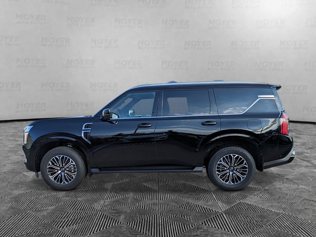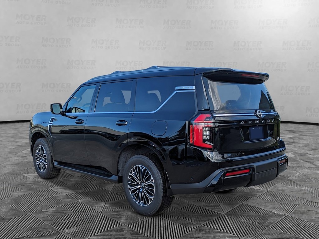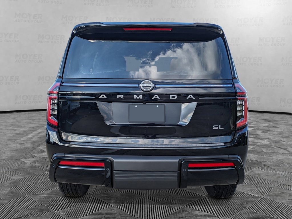12 Speakers, 2nd Row Center Console with Two Cupholders, 2nd Row Outboard Captain's Chairs with Armrests, 3rd row seats: split-bench, 4-Wheel Disc Brakes, ABS brakes, Air Conditioning, Alloy wheels, AM/FM radio: SiriusXM w/360L, Anti-whiplash front head restraints, Apple CarPlay/Android Auto, Auto High-beam Headlights, Auto tilt-away steering wheel, Auto-dimming door mirrors, Auto-dimming Rear-View mirror, Auto-leveling suspension, Automatic temperature control, Brake assist, Bumpers: body-color, Captain's Chair Seat Package, Carpeted Floor Mats with Captain Chairs, Center Front Spoiler, Compass, Cross Bars, Delay-off headlights, Driver door bin, Driver vanity mirror, Dual front impact airbags, Dual front side impact airbags, Electronic Stability Control, Emergency communication system: NissanConnect Services, EZ Flex Second Row Seating System with One Touch Release, Four wheel independent suspension, Front anti-roll bar, Front Bucket Seats, Front Center Armrest, Front dual zone A/C, Front reading lights, Fully automatic headlights, Garage door transmitter: myQ Connected Garage, Genuine wood dashboard insert, Heated door mirrors, Heated Front Bucket Seats, Heated front seats, Heated steering wheel, HVAC memory, Illuminated entry, Knee airbag, Leather steering wheel, Low tire pressure warning, Memory seat, Navigation system: Google Maps, Occupant sensing airbag, Outside temperature display, Overhead airbag, Overhead console, Panic alarm, Passenger door bin, Passenger vanity mirror, Power door mirrors, Power driver seat, Power Liftgate, Power passenger seat, Power steering, Power windows, Radio: NissanConnect with SiriusXM 360L, Rain sensing wipers, Rear air conditioning, Rear anti-roll bar, Rear Bumper Protector, Rear reading lights, Rear seat center armrest, Rear window defroster, Rear window wiper, Reclining 3rd row seat, Remote keyless entry, Security system, Speed control, Speed-sensing steering, Speed-Sensitive Wipers, Splash Guards, Split folding rear seat, Spoiler, Steering wheel memory, Steering wheel mounted audio controls, Tachometer, TailorFit Seat Trim, Telescoping steering wheel, Tilt steering wheel, Traction control, Trip computer, Turn signal indicator mirrors, Variably intermittent wipers, Voltmeter, Wheels: 20" x 8.5J Machined and Painted Alloy. Super Black 2026 Nissan Armada SL 4WD 9-Speed Automatic 3.5L DOHC