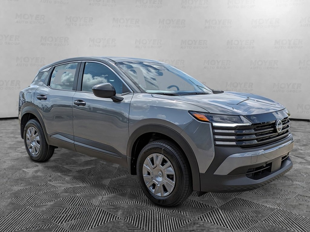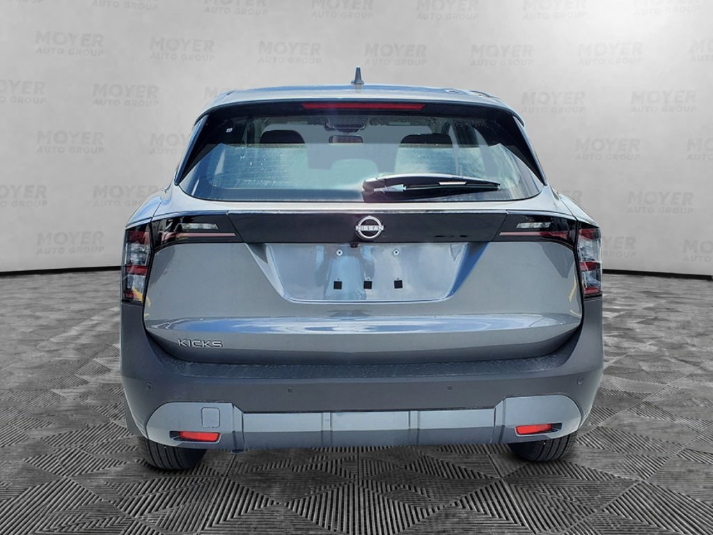 4 Speakers, 4-Wheel Disc Brakes, ABS brakes, Air Conditioning, AM/FM radio, Auto High-beam Headlights, Blind Spot Warning, Brake assist, Bumpers: body-color, Carpeted Floor Mats and Cargo Mat, Cloth Seat Trim, Driver door bin, Driver vanity mirror, Driver's Seat Mounted Armrest, Dual front impact airbags, Dual front side impact airbags, Electronic Stability Control, Emergency communication system, Exterior Parking Camera Rear, Front anti-roll bar, Front Bucket Seats, Front reading lights, Front wheel independent suspension, Fully automatic headlights, Illuminated entry, Knee airbag, Low tire pressure warning, NissanConnect featuring Apple CarPlay and Android Auto, Occupant sensing airbag, Outside temperature display, Overhead airbag, Panic alarm, Passenger door bin, Passenger vanity mirror, Power door mirrors, Power steering, Power windows, Radio data system, Radio: AM/FM/SiriusXM Audio System, Rear anti-roll bar, Rear reading lights, Rear side impact airbag, Rear window defroster, Rear window wiper, Remote keyless entry, Security system, Speed control, Speed-sensing steering, Splash Guards, Split folding rear seat, Spoiler, Sport steering wheel, Steering wheel mounted audio controls, Tachometer, Telescoping steering wheel, Tilt steering wheel, Traction control, Trip computer, Variably intermittent wipers, Wheels: 16" Steel with Full Covers. Gun Metallic 2026 Nissan Kicks S FWD CVT with Xtronic 2.0L DOHC