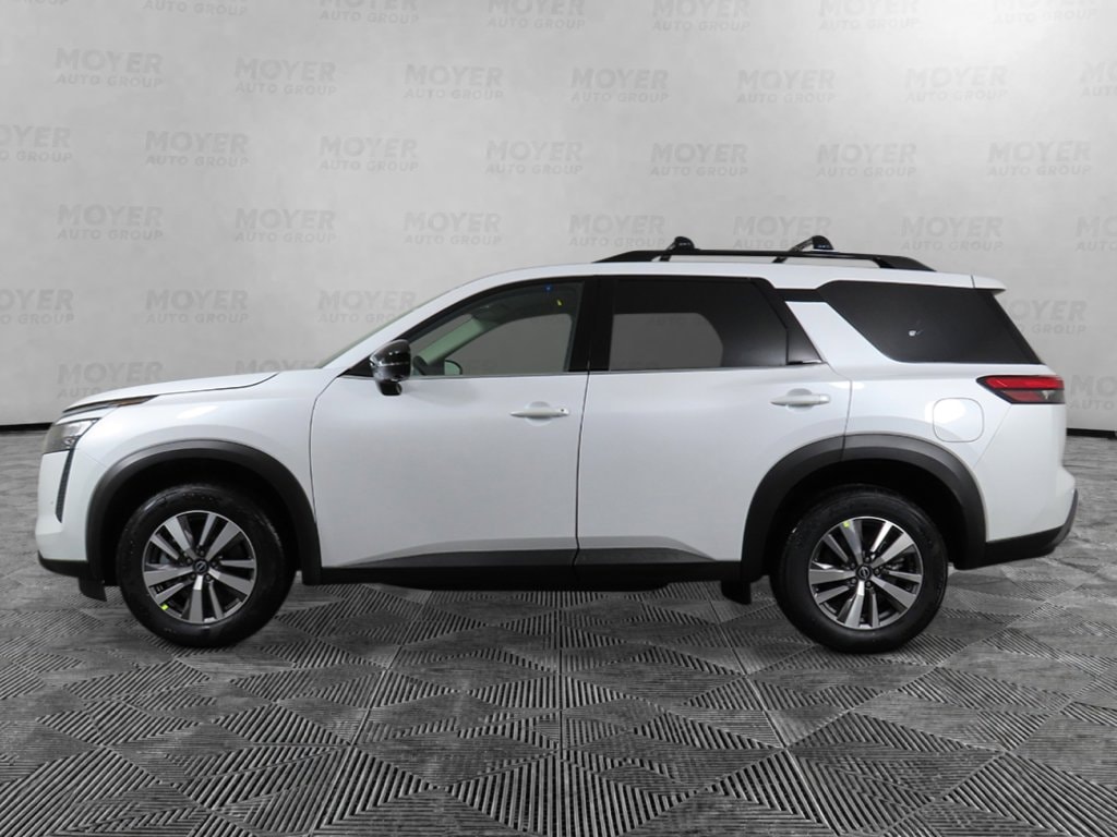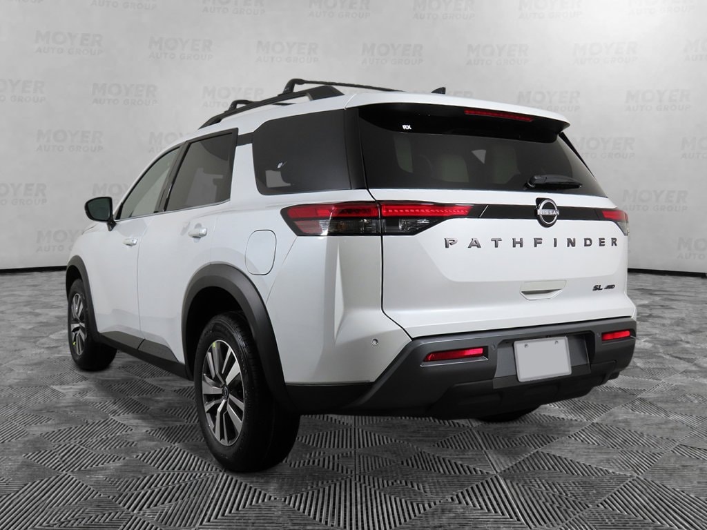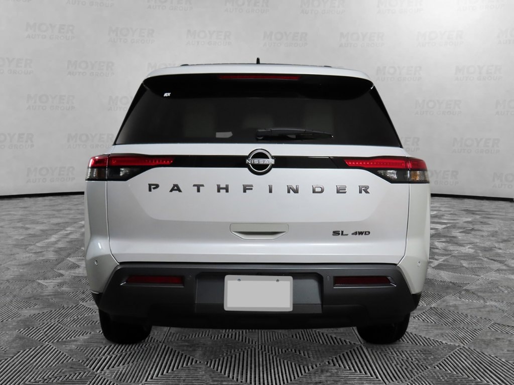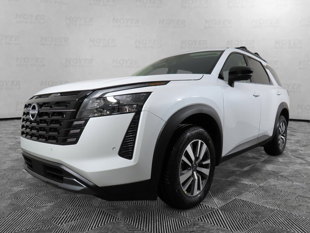 18" Machined Alloy Wheels, 3rd row seats: bench, 4-Piece Black Splash Guards, 4-Wheel Disc Brakes, 6 Speakers, ABS brakes, Air Conditioning, Alloy wheels, AM/FM radio: SiriusXM w/360L, Auto High-beam Headlights, Auto-dimming Rear-View mirror, Automatic temperature control, Bench Seat Carpeted Floor Mats, Brake assist, Bumpers: body-color, Cross Bars, Delay-off headlights, Driver door bin, Driver vanity mirror, Dual front impact airbags, Dual front side impact airbags, Electronic Stability Control, Emergency communication system: NissanConnect Services, Four wheel independent suspension, Front anti-roll bar, Front Bucket Seats, Front Center Armrest, Front dual zone A/C, Front reading lights, Fully automatic headlights, Garage door transmitter: HomeLink, Heated door mirrors, Heated Front Bucket Seats, Heated front seats, Heated steering wheel, Illuminated entry, Knee airbag, Low tire pressure warning, NissanConnect featuring Apple CarPlay and Android Auto, Occupant sensing airbag, Outside temperature display, Overhead airbag, Overhead console, Panic alarm, Passenger door bin, Passenger vanity mirror, Power door mirrors, Power driver seat, Power Liftgate, Power steering, Power windows, Premium Paint, Radio data system, Radio: AM/FM Audio System with NissanConnect, Rear air conditioning, Rear anti-roll bar, Rear reading lights, Rear seat center armrest, Rear side impact airbag, Rear window defroster, Rear window wiper, Reclining 3rd row seat, Remote keyless entry, Security system, Speed control, Speed-sensing steering, Split folding rear seat, Spoiler, Steering wheel mounted audio controls, Tachometer, TailorFit Appointed Seating Surfaces, Telescoping steering wheel, Tilt steering wheel, Traction control, Trip computer, Turn signal indicator mirrors, Variably intermittent wipers. Everest White Pearl Tricoat 2026 Nissan Pathfinder SL 4WD 9-Speed Automatic 3.5L V6 DOHC