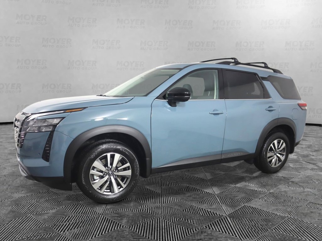 18" Machined Alloy Wheels, 3rd row seats: bench, 4-Piece Black Splash Guards, 4-Wheel Disc Brakes, 6 Speakers, ABS brakes, Air Conditioning, Alloy wheels, AM/FM radio: SiriusXM w/360L, Auto High-beam Headlights, Auto-dimming Rear-View mirror, Automatic temperature control, Bench Seat Carpeted Floor Mats, Brake assist, Bumpers: body-color, Cross Bars, Delay-off headlights, Driver door bin, Driver vanity mirror, Dual front impact airbags, Dual front side impact airbags, Electronic Stability Control, Emergency communication system: NissanConnect Services, Four wheel independent suspension, Front anti-roll bar, Front Bucket Seats, Front Center Armrest, Front dual zone A/C, Front reading lights, Fully automatic headlights, Garage door transmitter: HomeLink, Heated door mirrors, Heated Front Bucket Seats, Heated front seats, Heated steering wheel, Illuminated entry, Knee airbag, Low tire pressure warning, NissanConnect featuring Apple CarPlay and Android Auto, Occupant sensing airbag, Outside temperature display, Overhead airbag, Overhead console, Panic alarm, Passenger door bin, Passenger vanity mirror, Power door mirrors, Power driver seat, Power Liftgate, Power steering, Power windows, Premium Paint, Radio data system, Radio: AM/FM Audio System with NissanConnect, Rear air conditioning, Rear anti-roll bar, Rear reading lights, Rear seat center armrest, Rear side impact airbag, Rear window defroster, Rear window wiper, Reclining 3rd row seat, Remote keyless entry, Security system, Speed control, Speed-sensing steering, Split folding rear seat, Spoiler, Steering wheel mounted audio controls, Tachometer, TailorFit Appointed Seating Surfaces, Telescoping steering wheel, Tilt steering wheel, Traction control, Trip computer, Turn signal indicator mirrors, Variably intermittent wipers. Baltic Teal 2026 Nissan Pathfinder SL 4WD 9-Speed Automatic 3.5L V6 DOHC