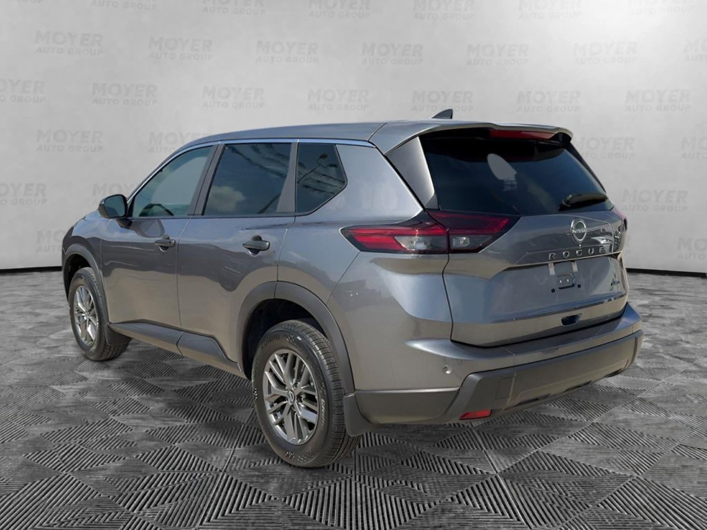 17" Alloy Wheels, 4 Speakers, 4-Wheel Disc Brakes, ABS brakes, Air Conditioning, Alloy wheels, AM/FM radio: Sirius, Apple CarPlay/Android Auto, Auto High-beam Headlights, Black Splash Guards (set of 4), Blind Spot Warning, Brake assist, Bumpers: body-color, Cloth Seat Trim, Delay-off headlights, Driver door bin, Driver vanity mirror, Dual front impact airbags, Dual front side impact airbags, Electronic Stability Control, First Aid Kit, Floor Mats with 1-Piece Cargo Area Protector, Four wheel independent suspension, Front anti-roll bar, Front Bucket Seats, Front Center Armrest, Front reading lights, Fully automatic headlights, Illuminated entry, Knee airbag, Low tire pressure warning, Occupant sensing airbag, Outside temperature display, Overhead airbag, Overhead console, Panic alarm, Passenger door bin, Passenger vanity mirror, Power door mirrors, Power steering, Power windows, Radio data system, Radio: AM/FM NissanConnect, Rear anti-roll bar, Rear seat center armrest, Rear side impact airbag, Rear window defroster, Rear window wiper, Remote keyless entry, Speed control, Speed-sensing steering, Speed-Sensitive Wipers, Split folding rear seat, Spoiler, Steering wheel mounted audio controls, Tachometer, Telescoping steering wheel, Tilt steering wheel, Traction control, Trip computer, Variably intermittent wipers. Gun Metallic 2026 Nissan Rogue S AWD CVT with Xtronic 1.5L DOHC